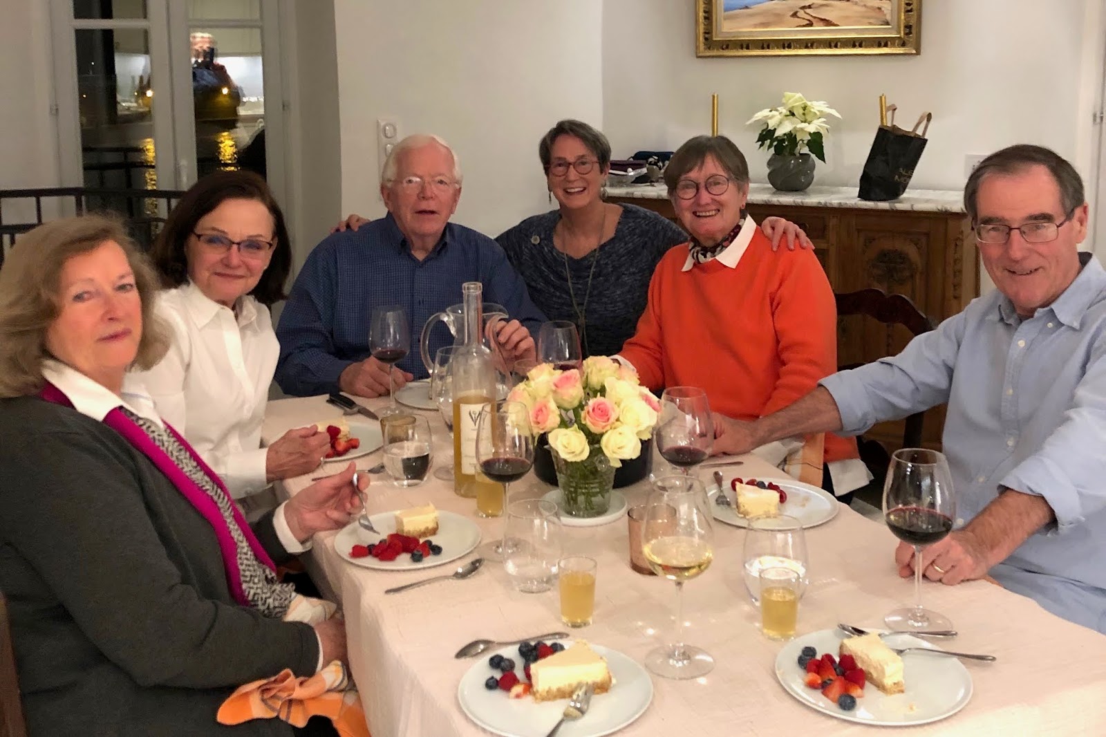 Notwithstanding my disappointment and embarrassment, I am proud to say that I did not utter a single bad word. Our guests enjoyed a terrific vegetarian meal. We finished off the hors d'oeuvres, and had a nice plate of rice, tomatoes and romanesco. Our guests were very understanding, but one commented that the rice and vegetables would go great with chicken. Of course we finished off the meal with the cheesecake. I have to say it was great cheesecake despite the fact that some of the ingredients called for by the recipe were not available. We have never found graham crackers in France. At Jane's suggestion we substituted some ricotta for a third of the cream cheese, making it perfectly light. Everybody enjoyed it thoroughly.